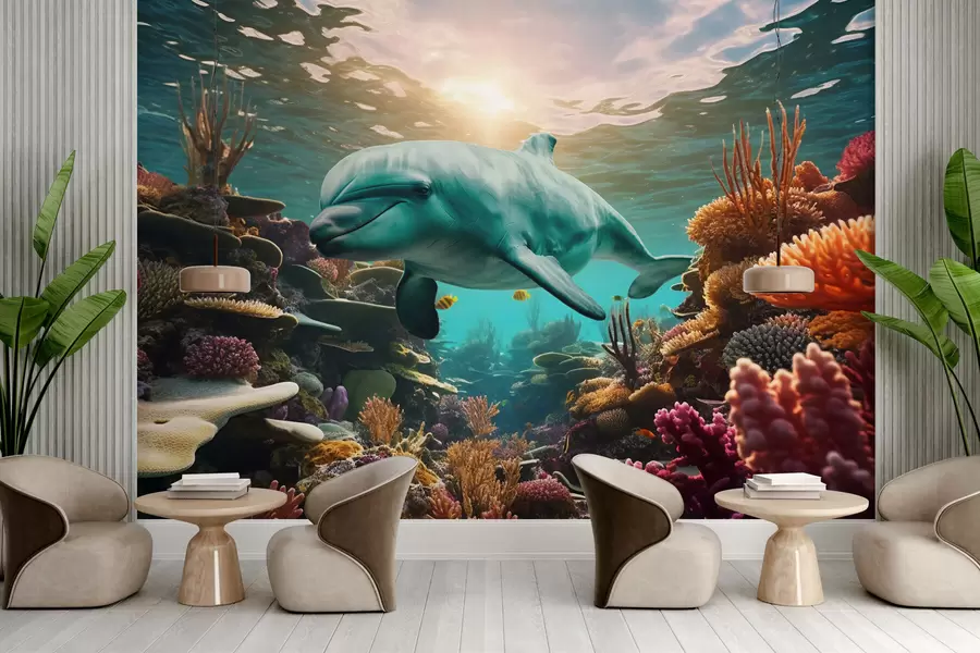 Gran delfín en el mundo submarino de los arrecifes de coral