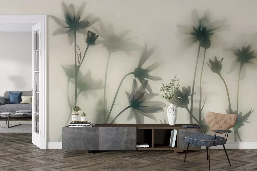Aireadas flores azules translúcidas que se disuelven en la luz de la mañana