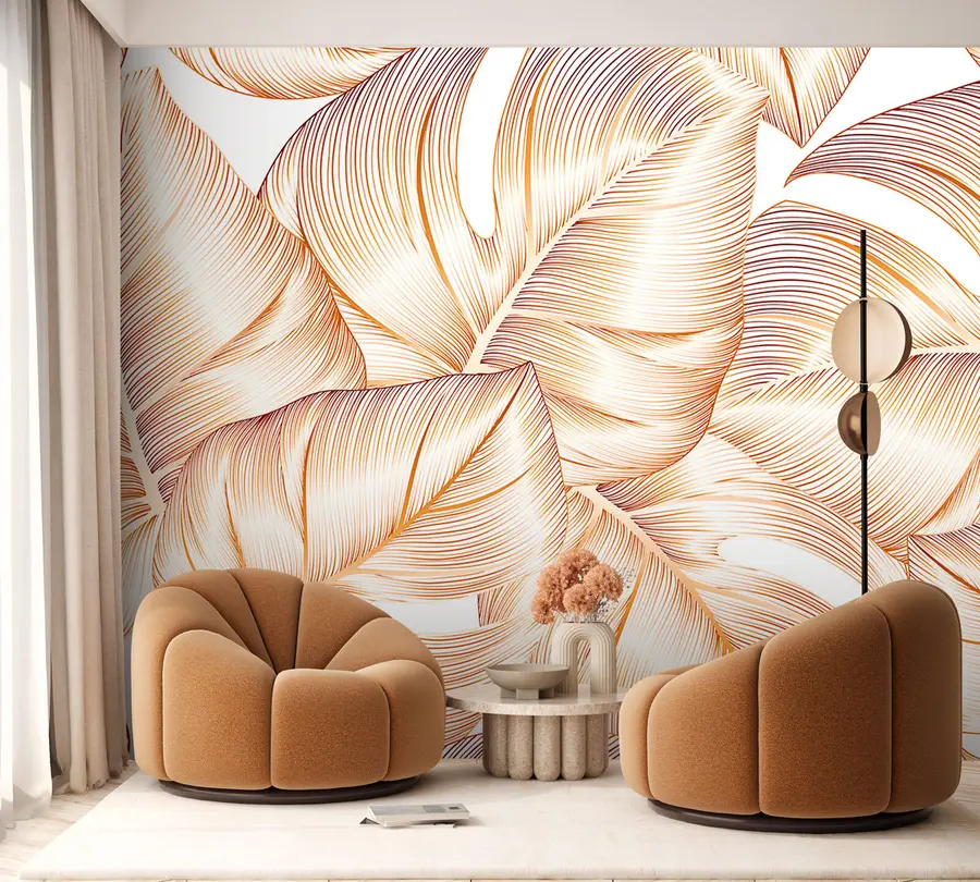 Hojas de palma de decoración moderna sobre un fondo de concreto