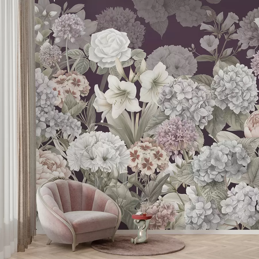 Delicadas flores translúcidas grises y beige con pétalos suaves y centros oscuros, sobre un fondo claro