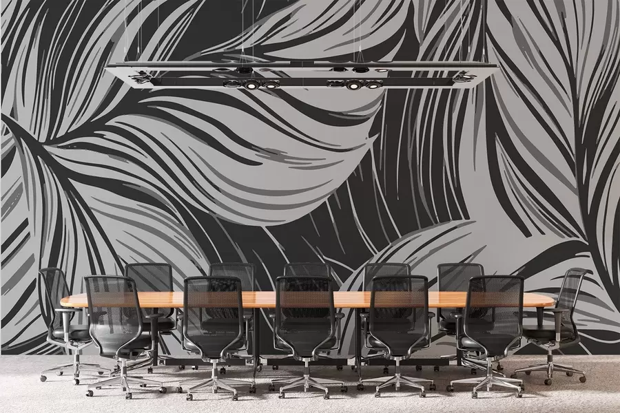 dibujadas grandes hojas de plátano en tonos grises