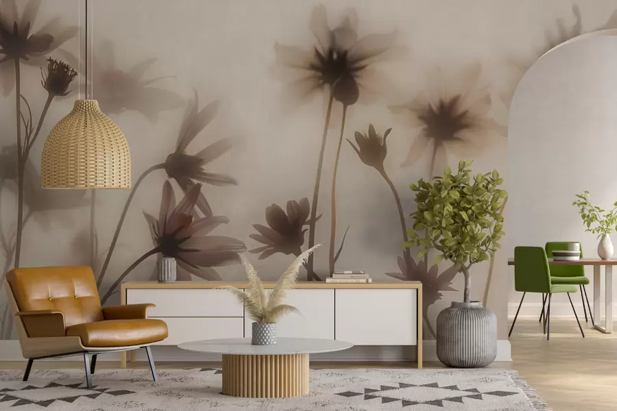 - si la sala de estar tiene un diseño lacónico con un mínimo de muebles, puede comprar fotomural con estampados grandes o abstractos.