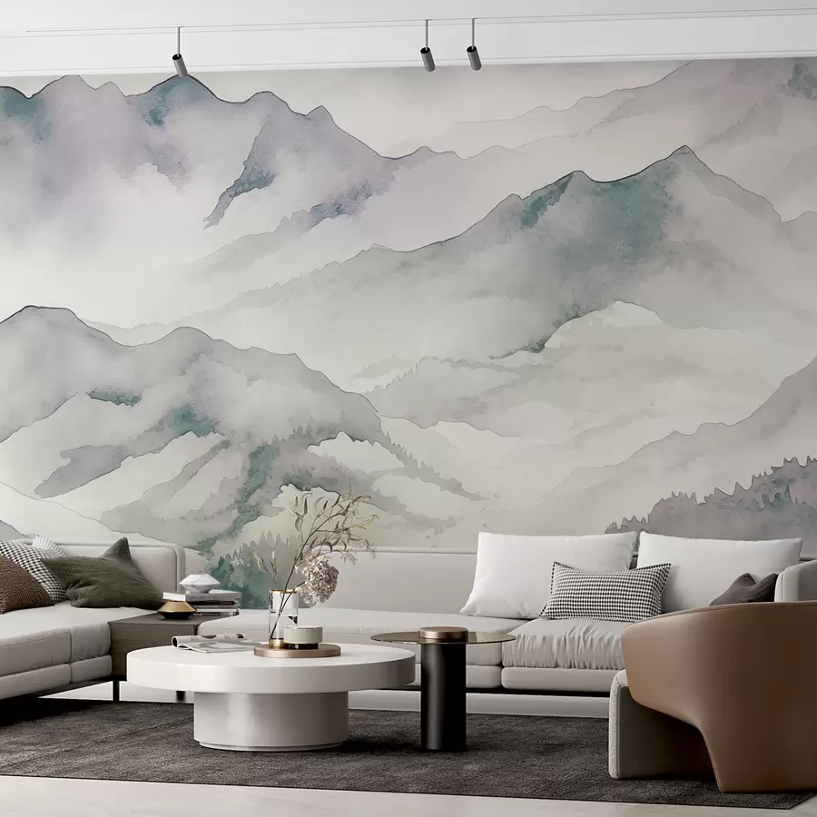 Cordilleras acuarela, paisaje, paisaje, azul, gris, color sepia