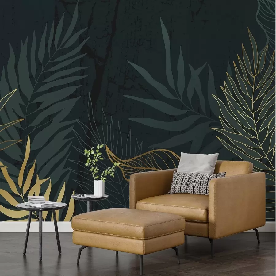 Motivos florales y hojas con estampado abstracto, minimalismo.