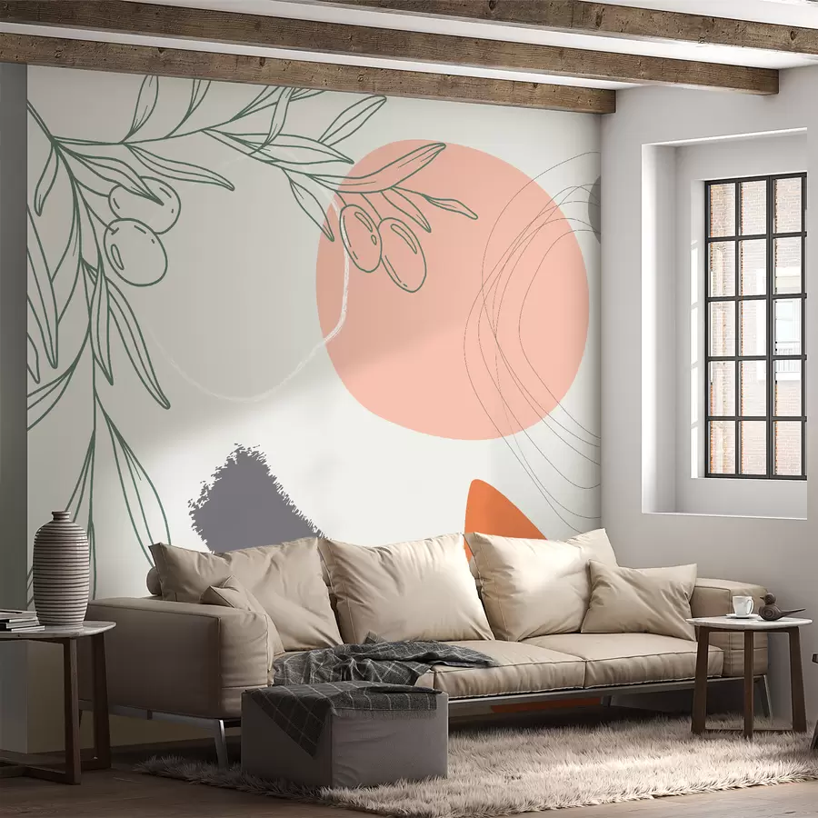 - si la sala de estar tiene un diseño lacónico con un mínimo de muebles, puede comprar fotomural con estampados grandes o abstractos.