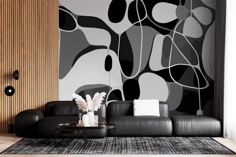 Papel pintado de arte moderno abstracto en tonos beige que imita piezas de colores para un diseño interior elegante