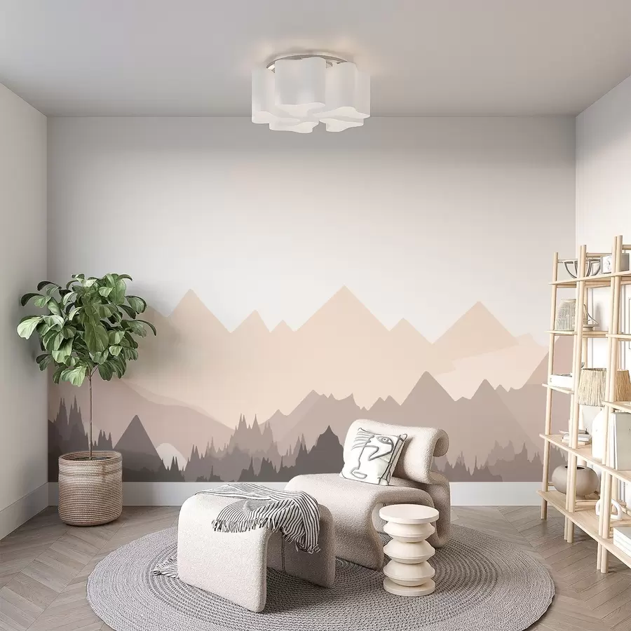 Árboles en la colina, dibujo estilo pastel, colores beige, rústico