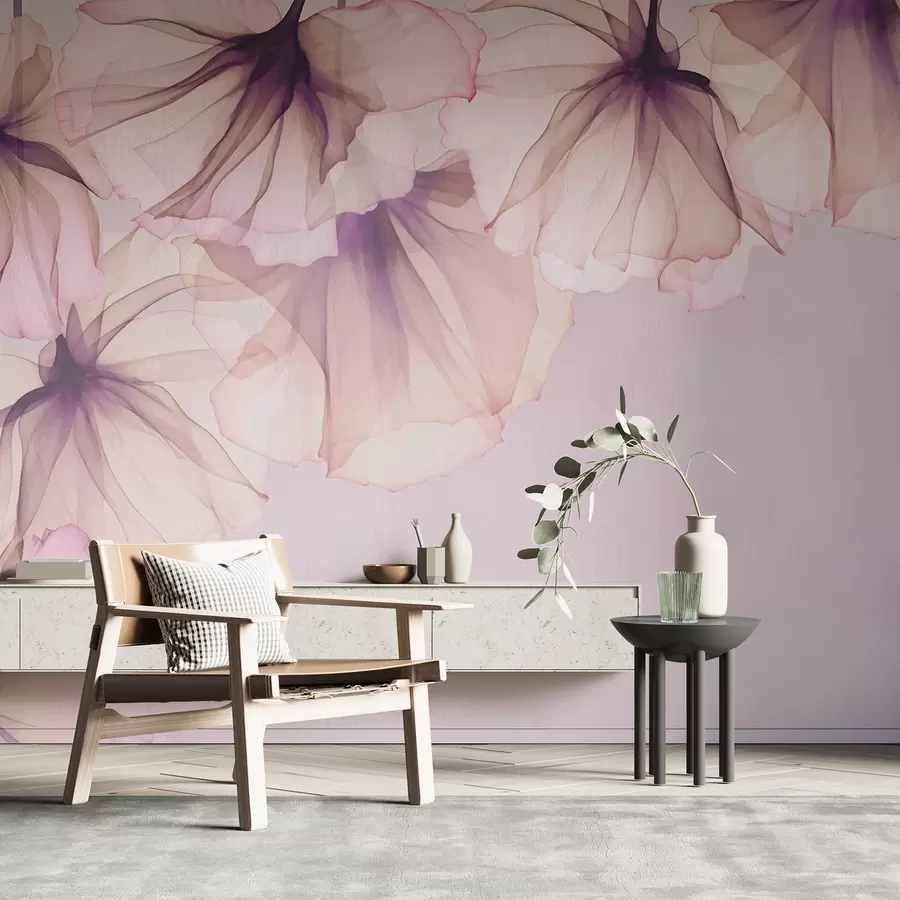 delicadas flores translúcidas, flores rosas, flores desde arriba