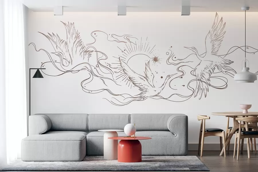 Pájaros voladores, dibujo lineal, minimalismo, paleta de colores beige