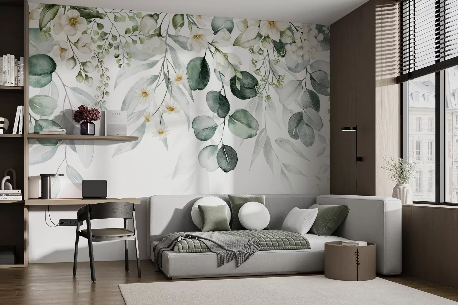 Motivos florales y hojas con estampado abstracto, minimalismo.