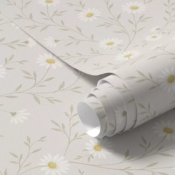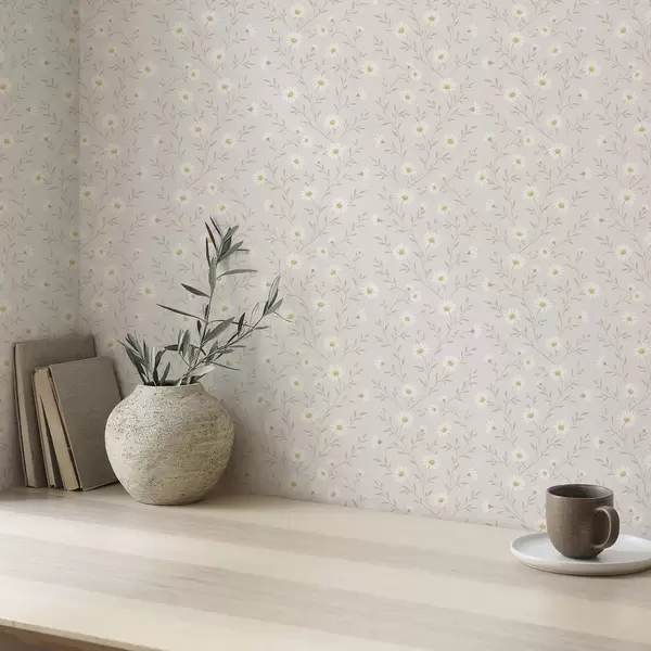 Papel tapiz Pequeñas margaritas en ramitas, beige cálido Nr. a00777