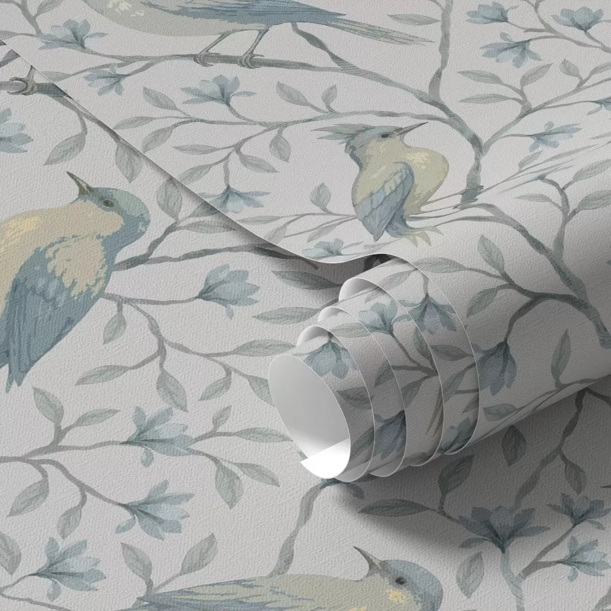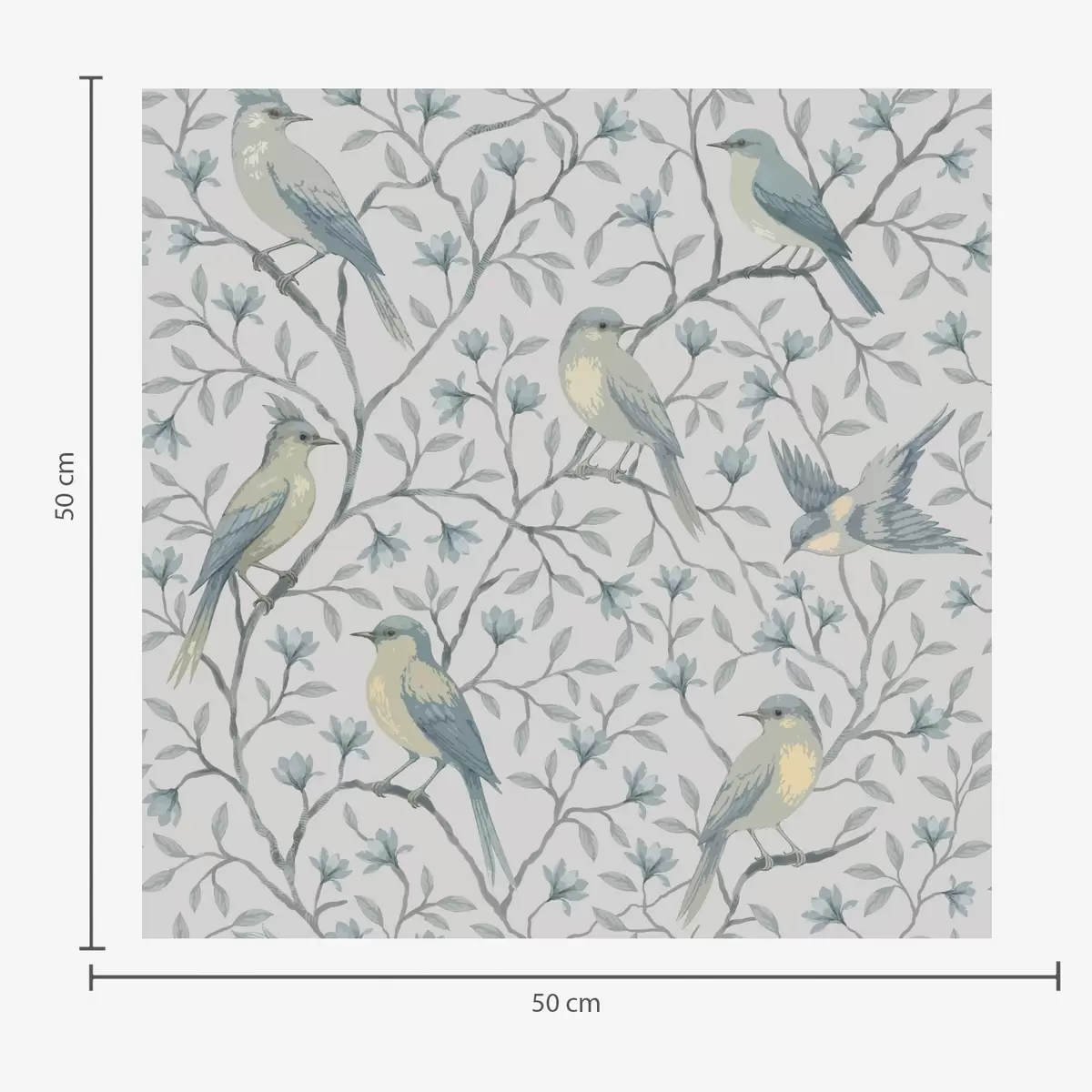 Papel tapiz Pájaros en las ramas, esquema gris azulado Nr. a00782