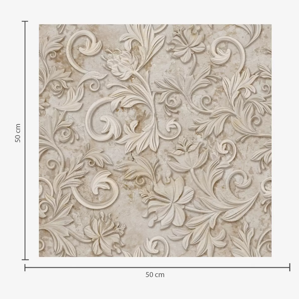 Papel tapiz Relieve en piedra con volutas florales, beige vintage Nr. a00784