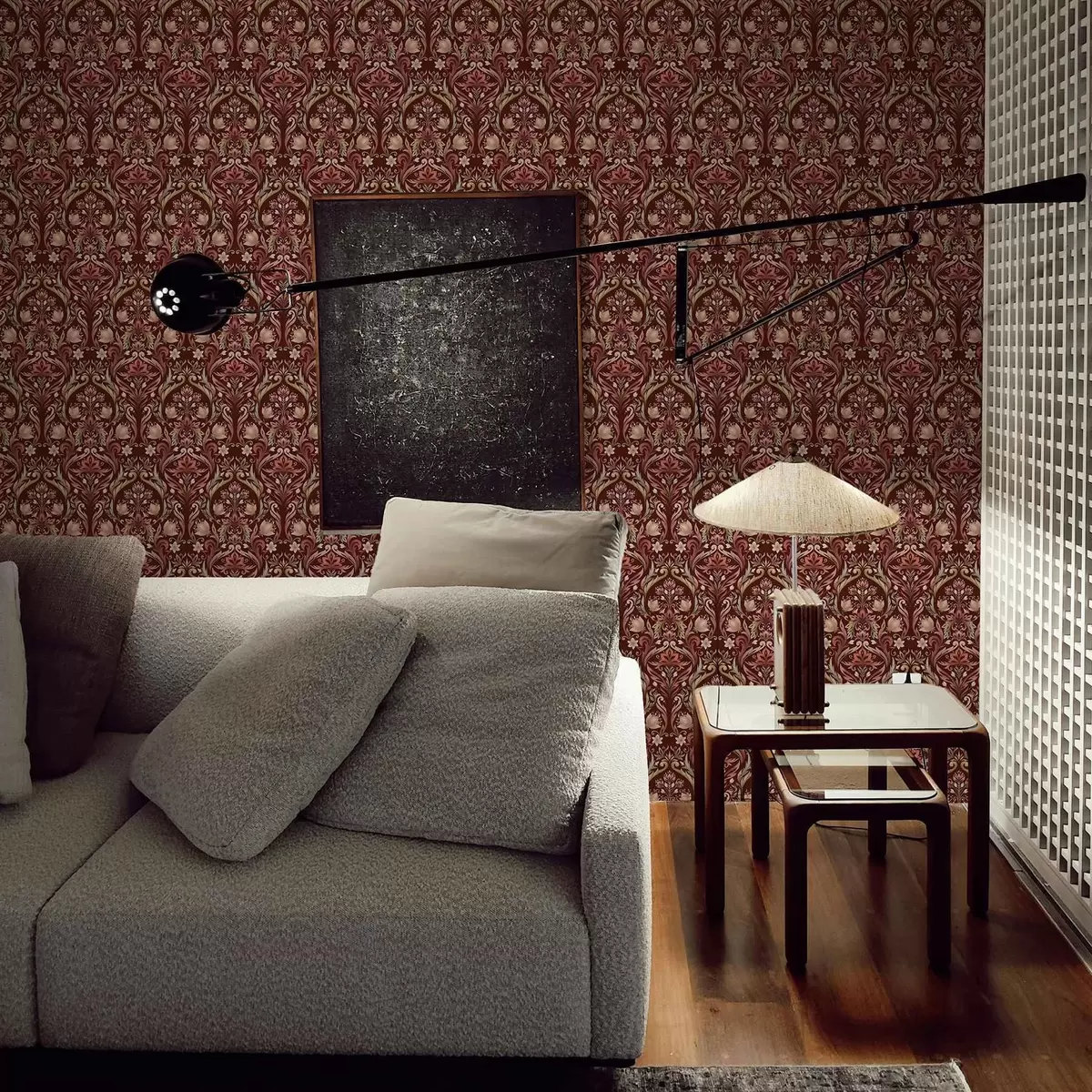 Papel tapiz Adorno de tulipán, fondo burdeos intenso Nr. a00827v2