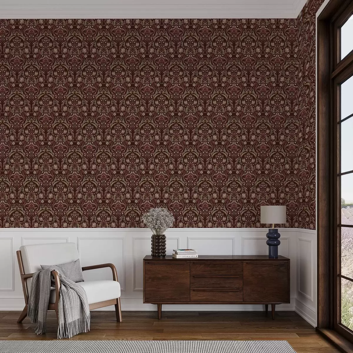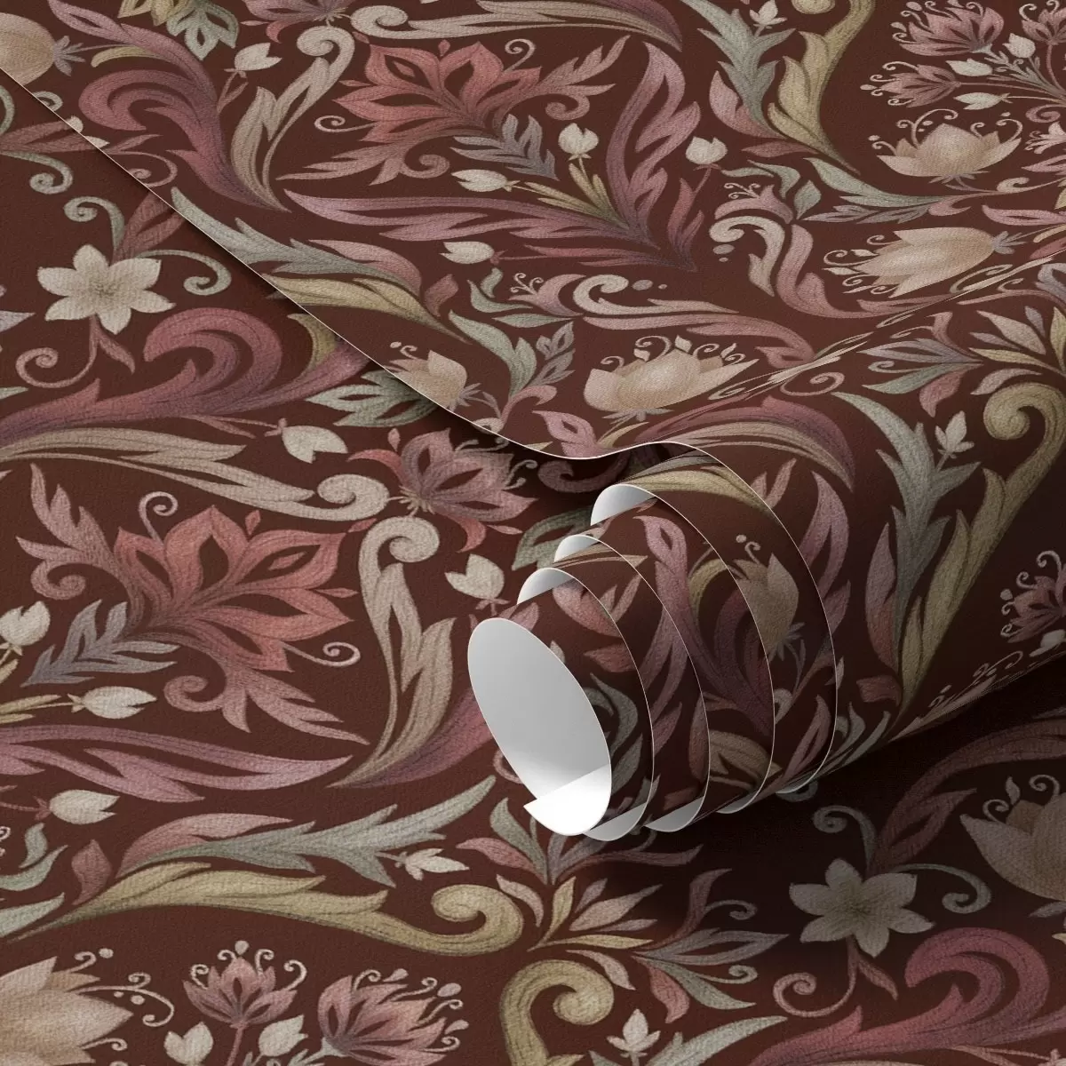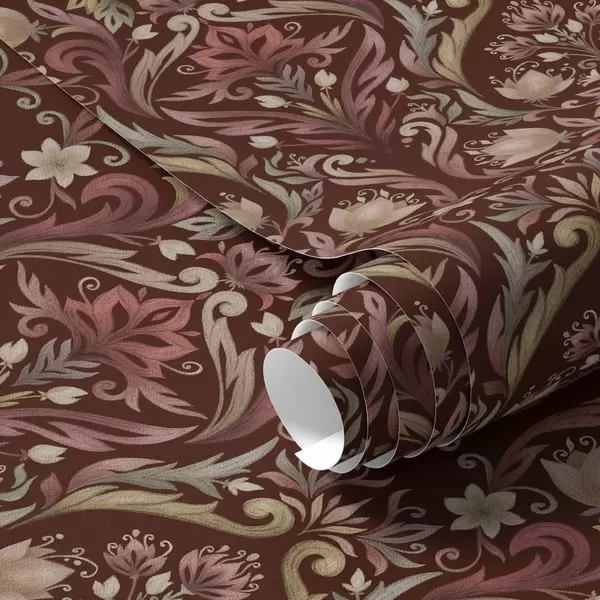 Papel pintado Adorno de tulipán, fondo burdeos intenso a00827v2