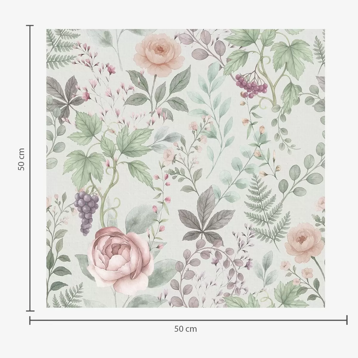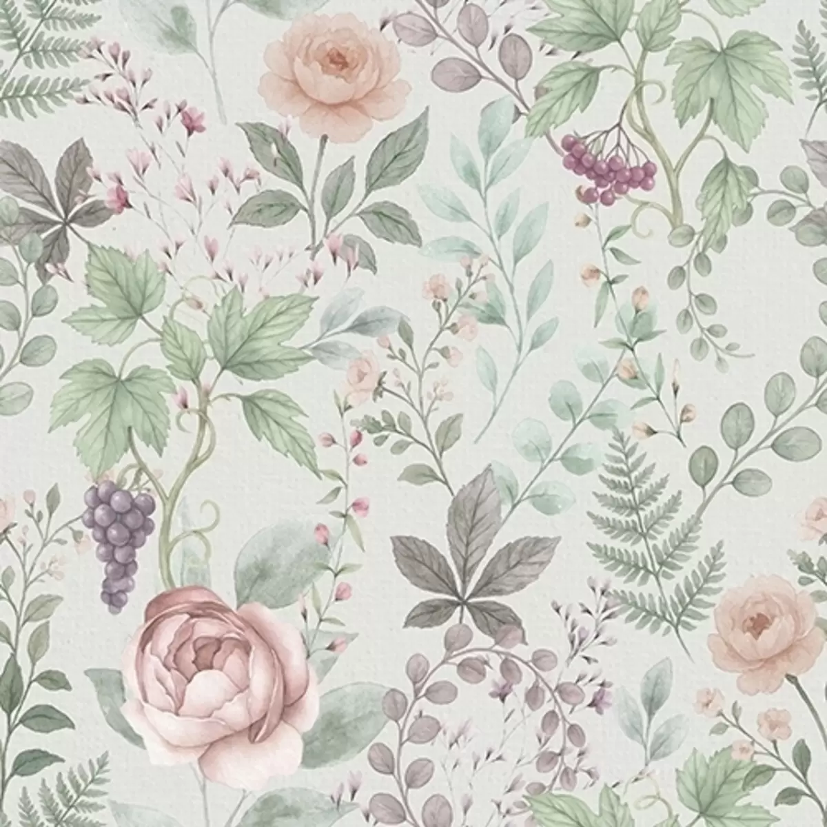 Fotomurales Jardín en tonos pastel con rosas, helechos y uvas. Nr. a00867
