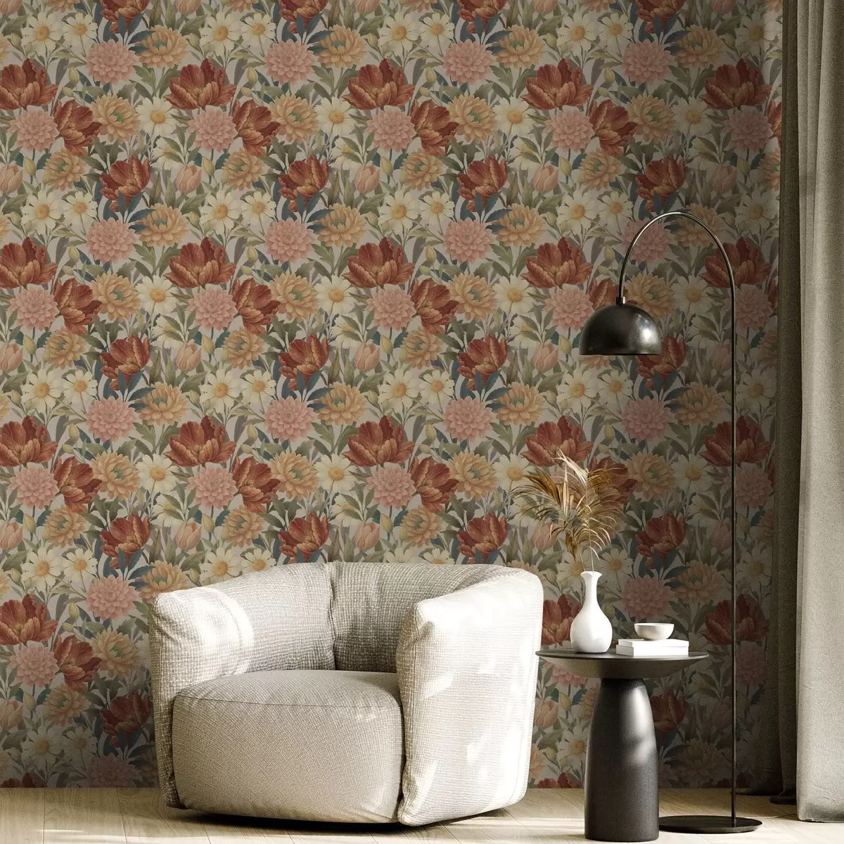Fotomurales Flores vintage de jardín en cálidos tonos terracota y melocotón. Nr. a00874