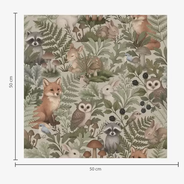 Fotomurales Animales del bosque y helechos sobre carbón oscuro Nr. a00880