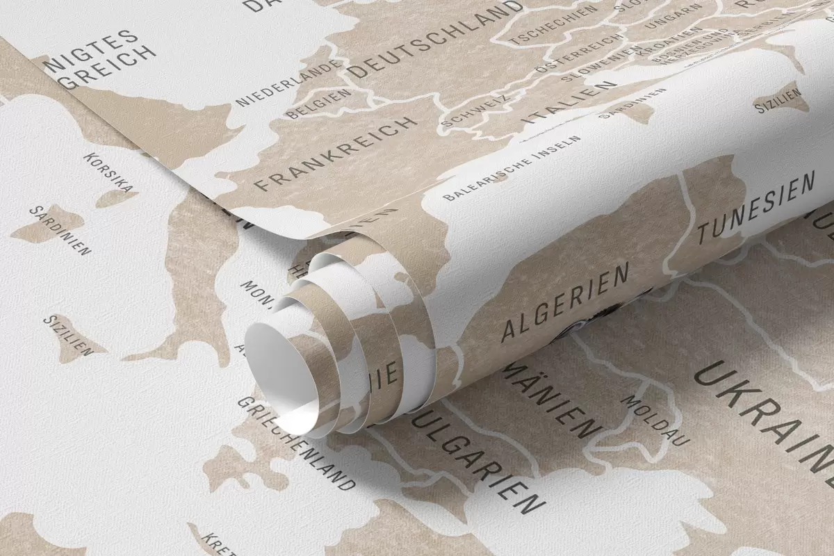Fotomurales Mapa infantil en estilo acuarela con animales y globos aerostáticos. En alemán. Color beige. Nr. c00001dev2