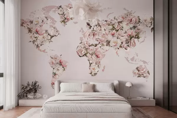 Fotomurales Un mapamundi rosa compuesto por grandes peonías blancas y rosas Nr. c00005