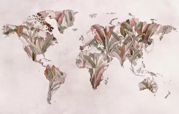 Fotomurales Un mapa verde del mundo hecho con hojas de plátano Nr. c00007