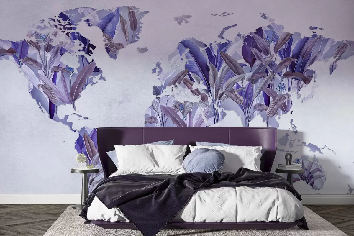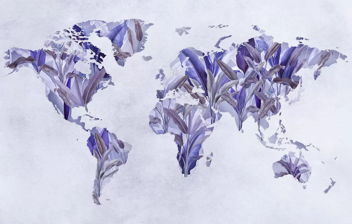 Fotomurales Un mapamundi morado hecho con hojas de plátano Nr. c00007v1