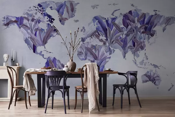 Fotomurales Un mapamundi morado hecho con hojas de plátano Nr. c00007v1