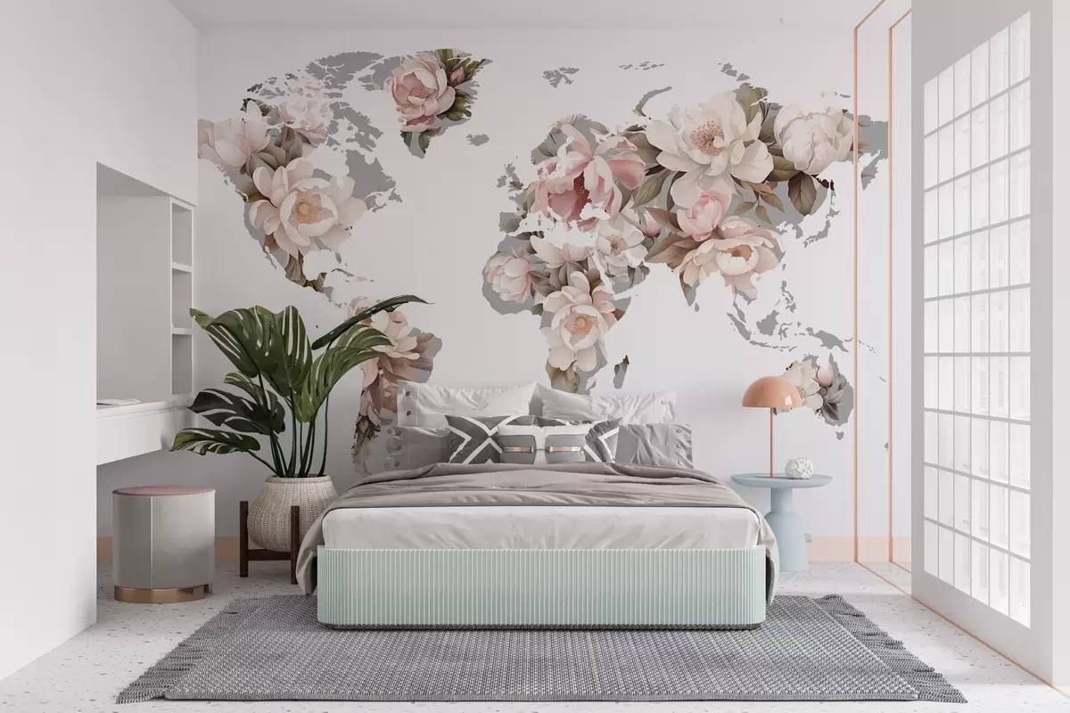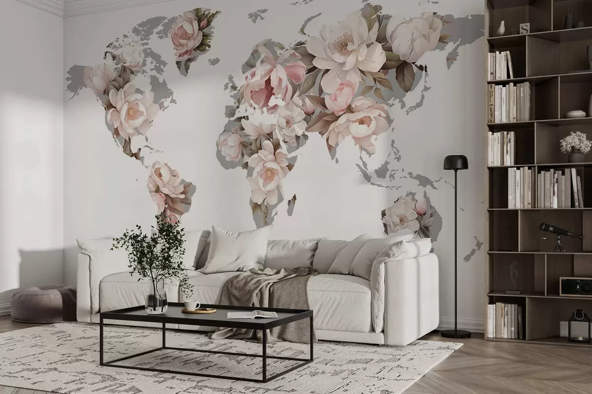 Fotomurales Un delicado y cremoso mapamundi hecho con flores Nr. c00008