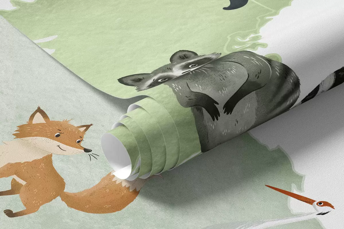 Fotomurales Un mapa verde con estilo de acuarela en el que aparecen animales. Etiquetas en ucraniano Nr. c00012ukv2