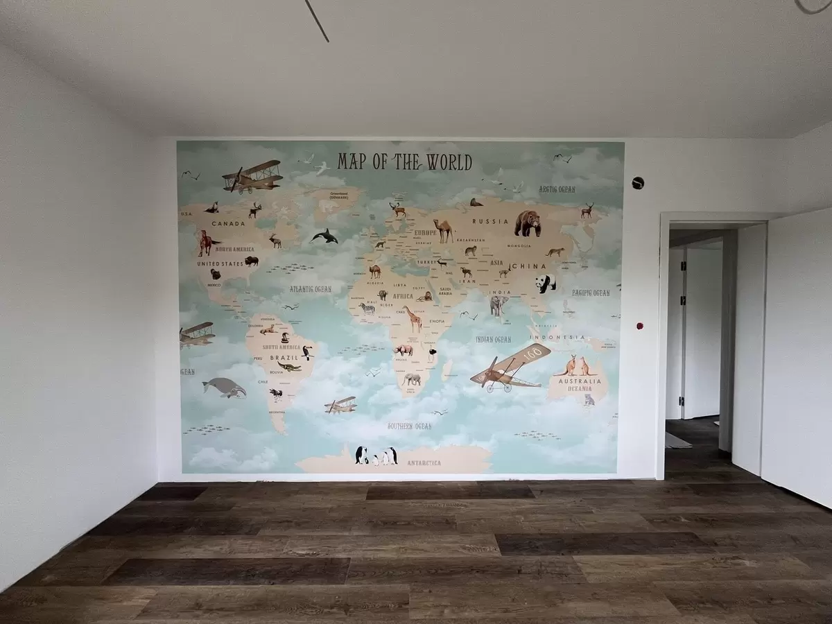 Se puede limpiar suavemente con una esponja suave. Los murales de pared con recubrimiento de barniz pueden limpiarse con agua.