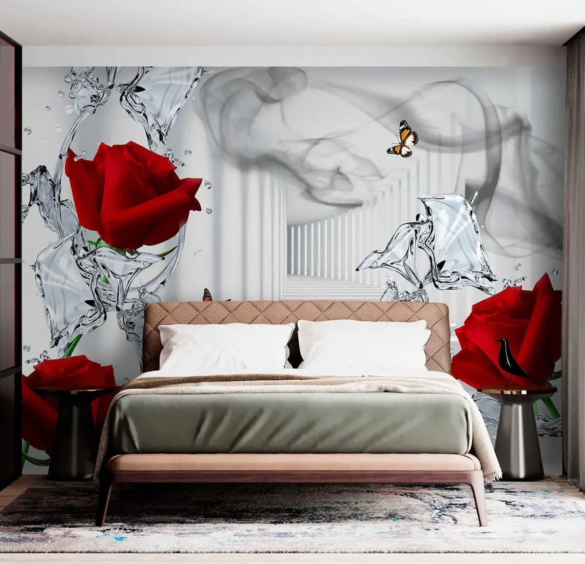 Fotomurales Rosas rojas y salpicaduras de agua Nr. u41092