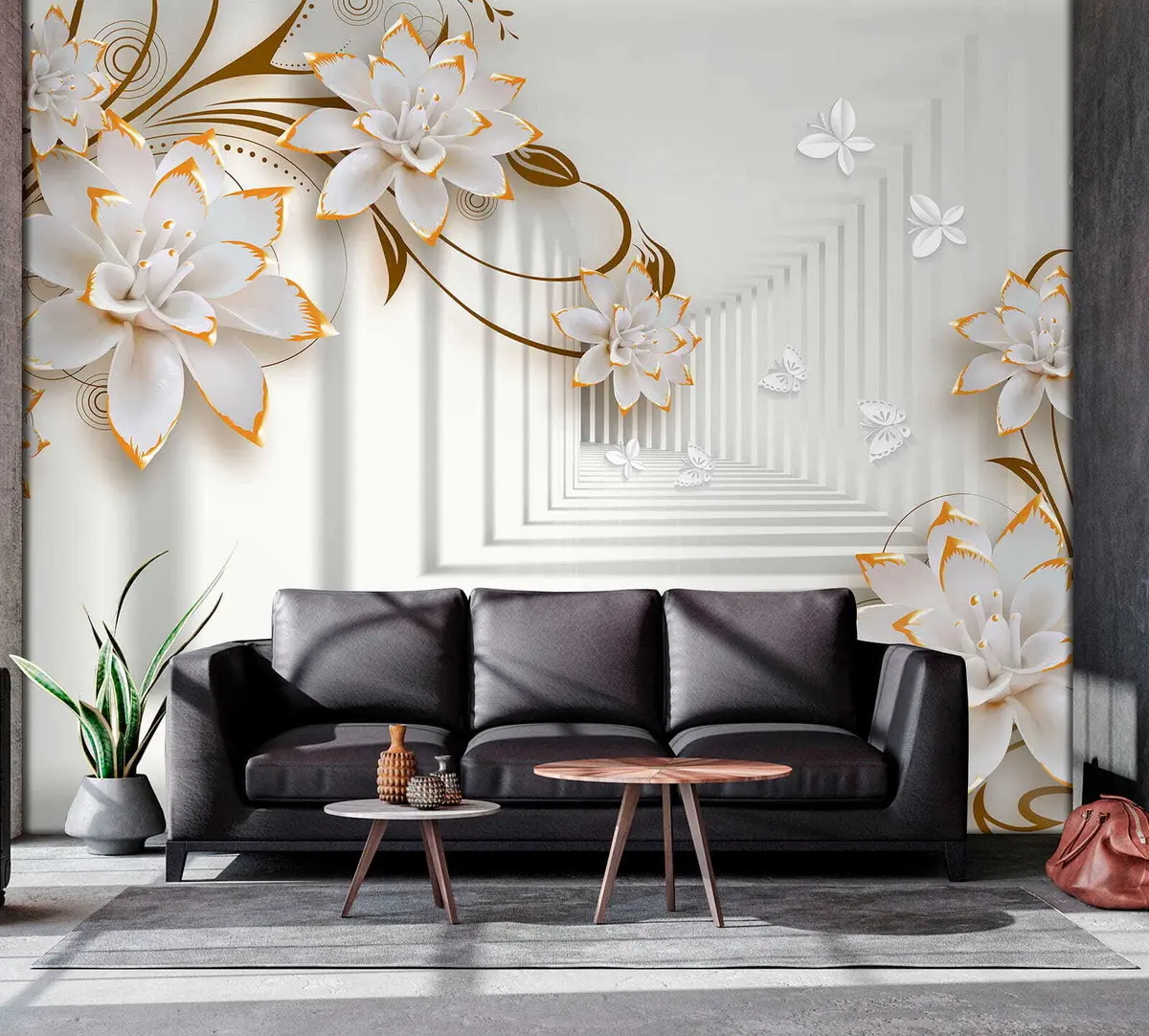 Fotomurales Flores y mariposas en un túnel de luz Nr. u47046