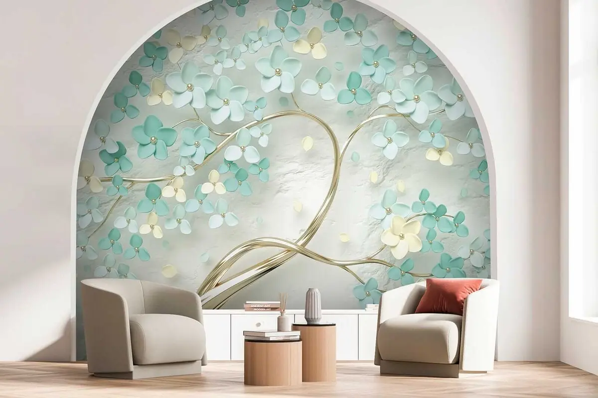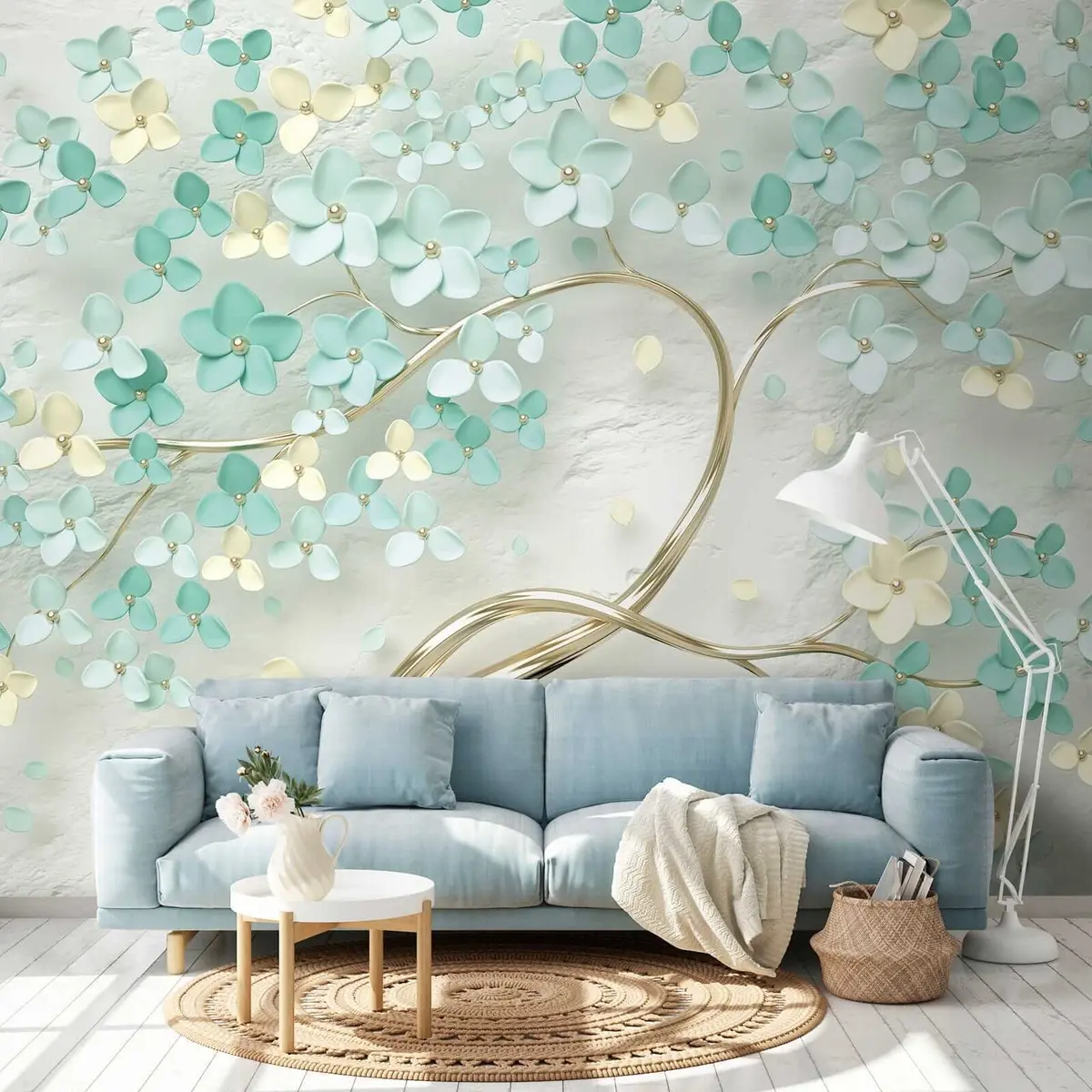 Fotomurales Árbol dorado con flores azules Nr. u52550