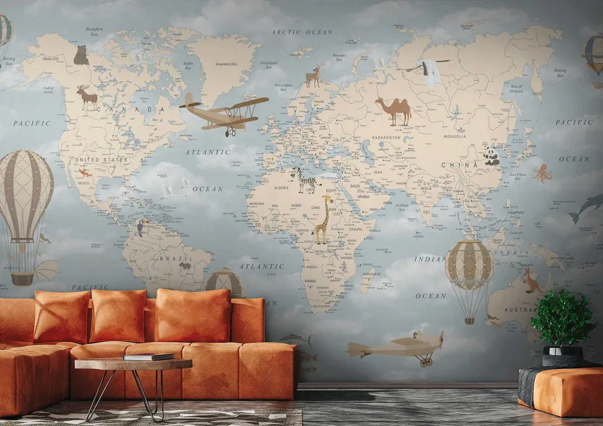 Fotomurales Mapa infantil del mundo con aviones Nr. u60135
