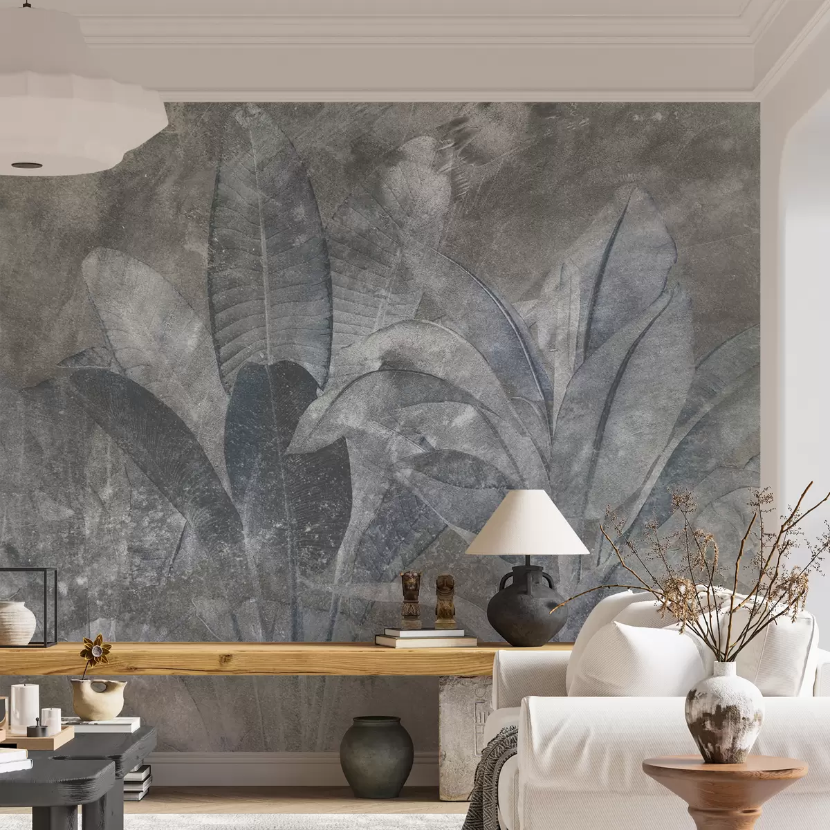 Fotomurales Hojas de plátano sobre fondo de piedra Nr. u73884v3