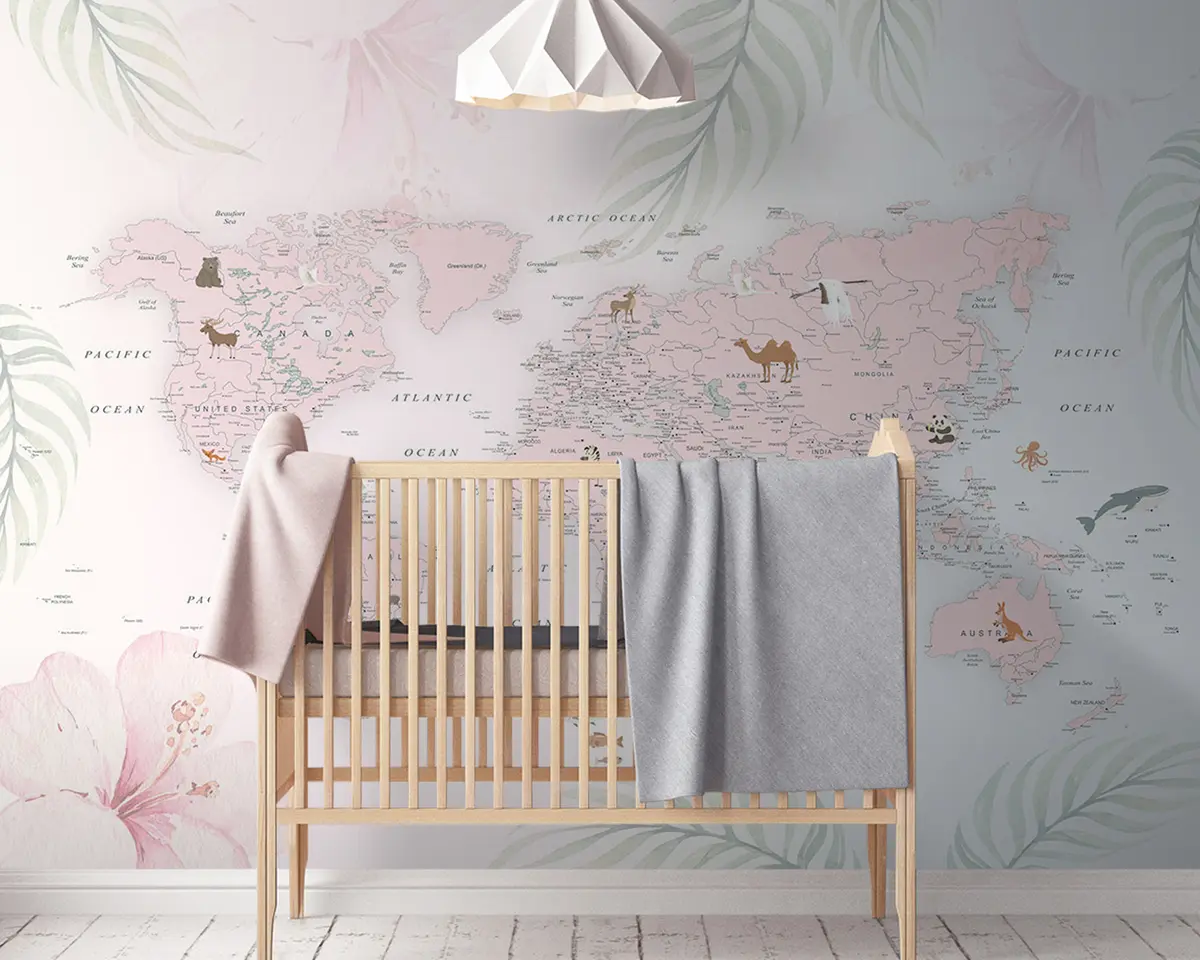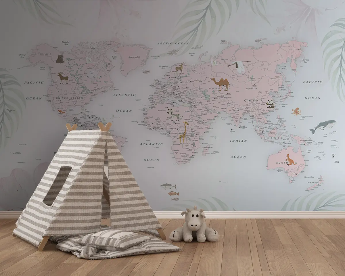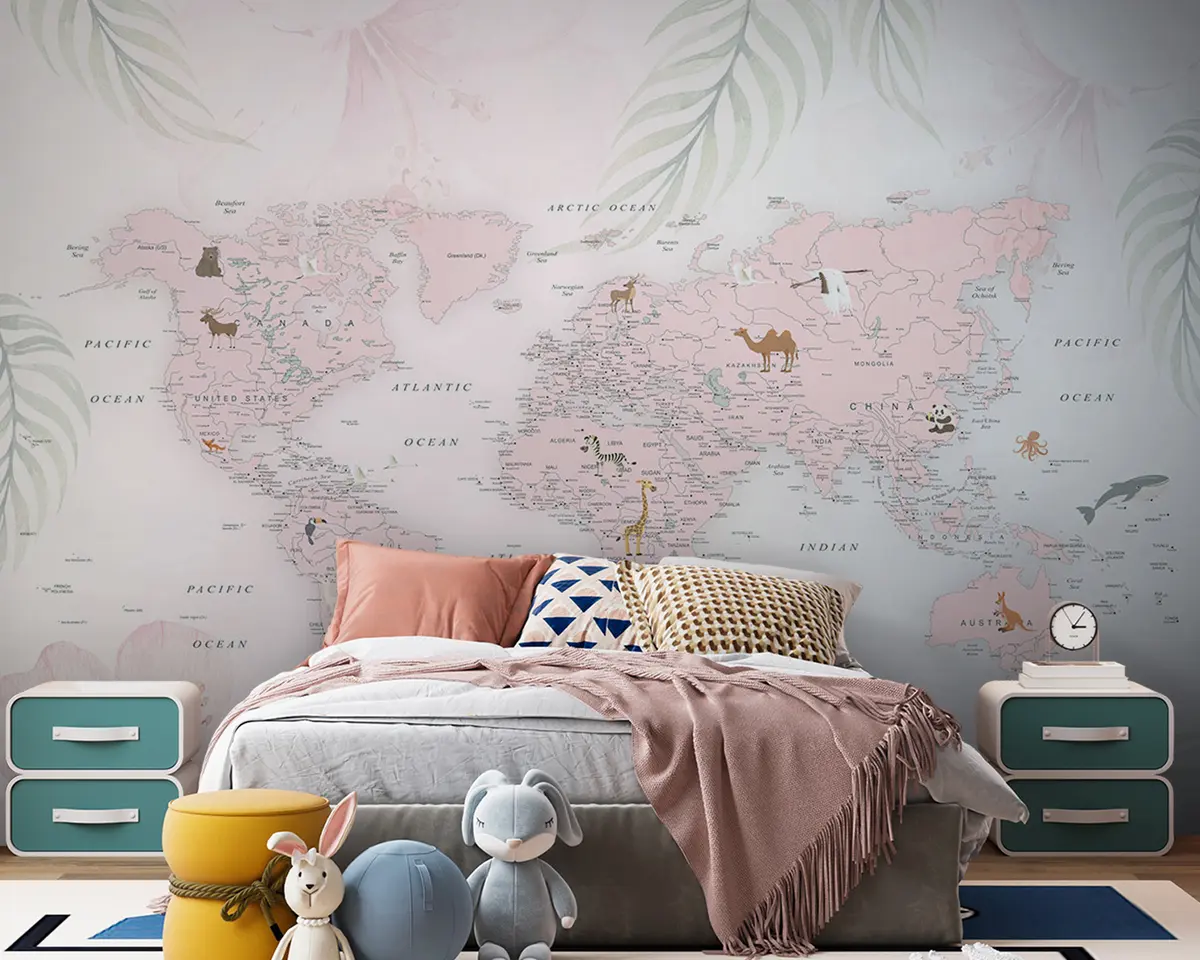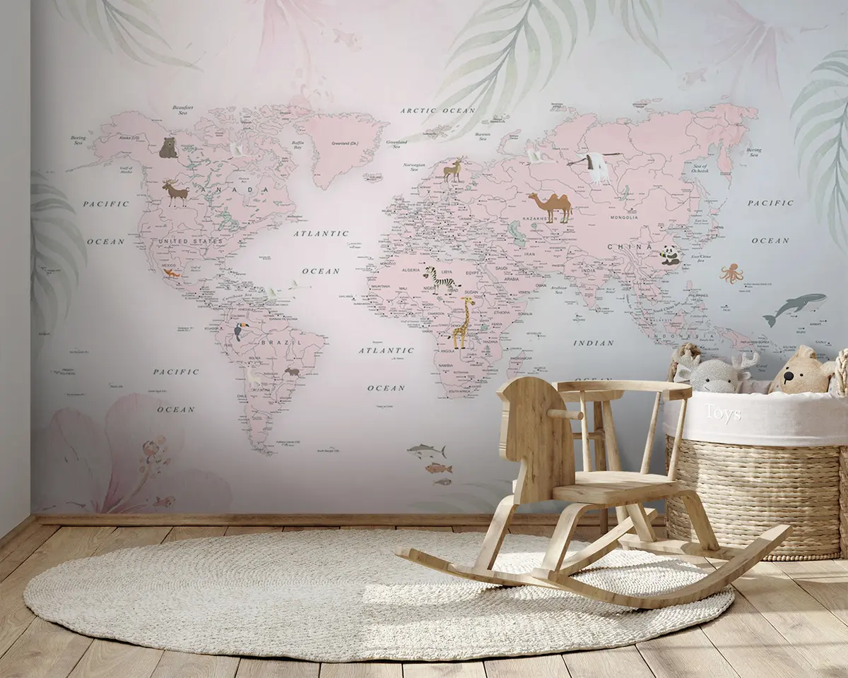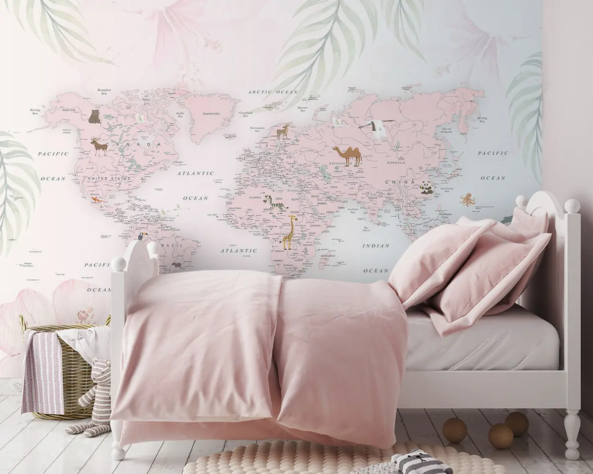 Fotomurales Mapa mundial para niñas en estilo rosa Nr. u79832