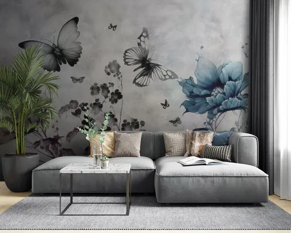Fotomurales Mariposas y flores en estilo acuarela Nr. u94001