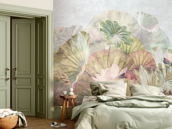 Fotomurales Nenúfares verdes y lirios rosas con textura grunge Nr. u94272