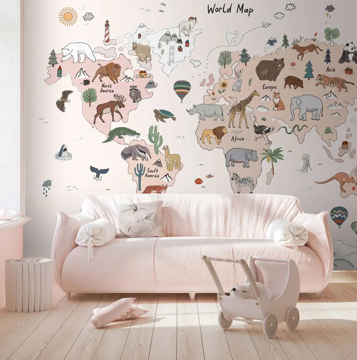 Fotomurales Mapa infantil del mundo con animales. Nr. u95028