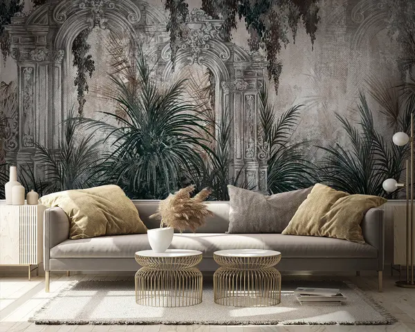 Fotomurales Arquitectura antigua con hojas tropicales Nr. u95500