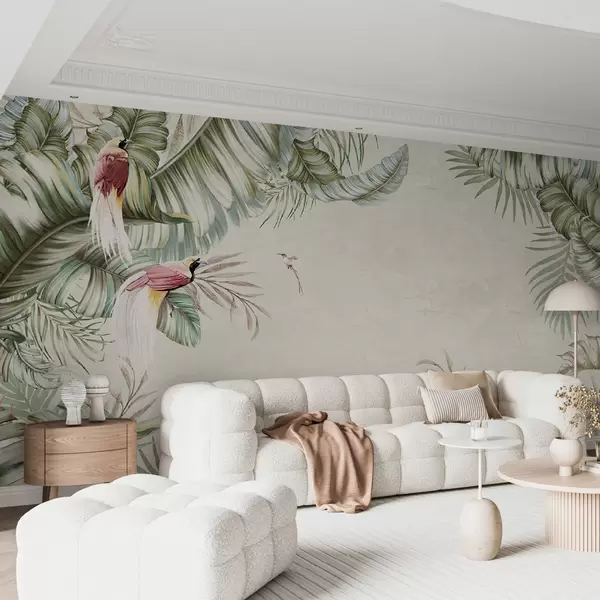 Fotomurales Plantas tropicales y pájaros sobre fondo texturizado Nr. u96550