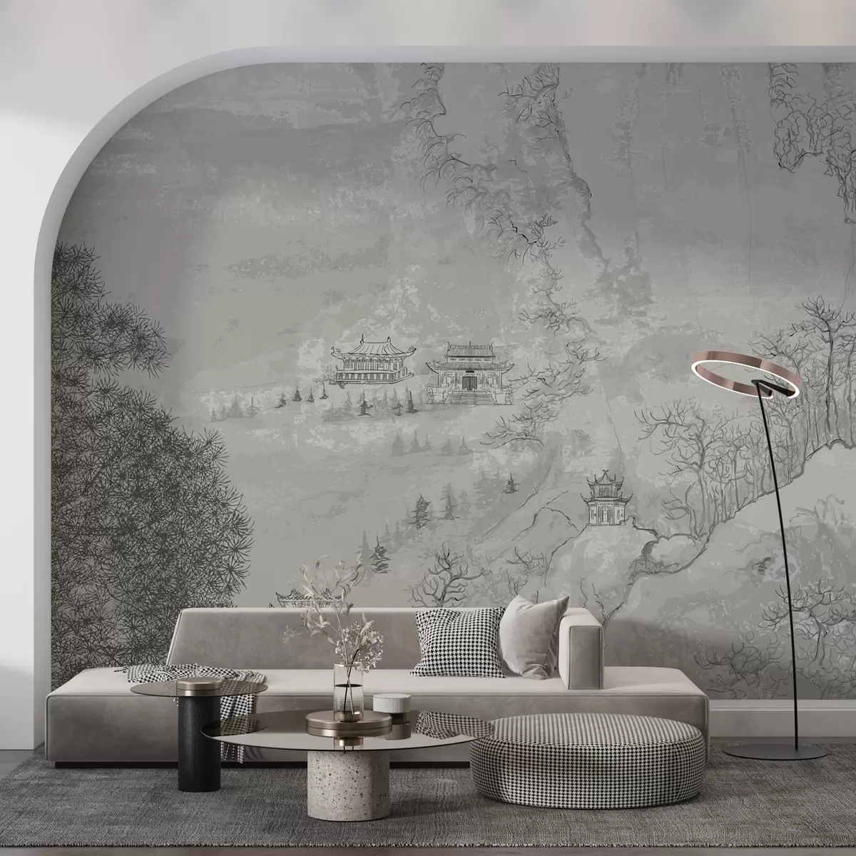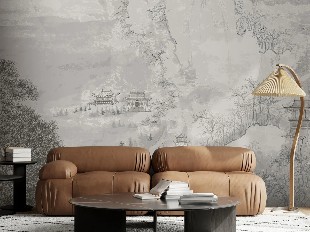 Fotomurales Ilustración de un paisaje chino al estilo de la pintura china antigua Nr. u98699
