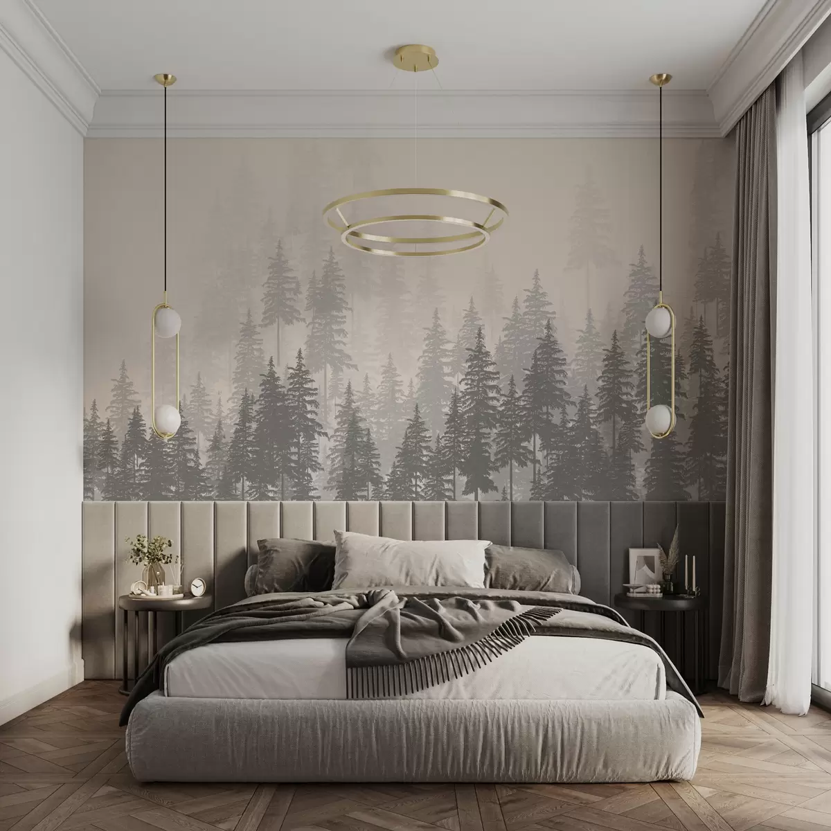 Fotomurales Ilustración monocromática de un bosque siempre verde Nr. u99076