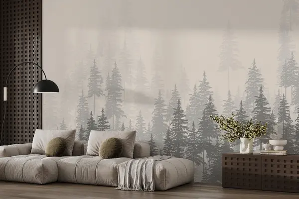 Fotomurales Ilustración monocromática de un bosque siempre verde Nr. u99076