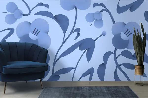 Fotomurales Estampado botánico con flores decorativas en azul Nr. u99196v8