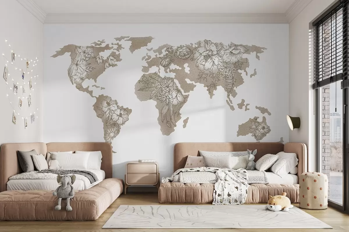Fotomurales Diseño floral del mapa del mundo Nr. u99734