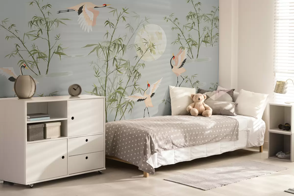 Se puede limpiar suavemente con una esponja suave. Los murales de pared con recubrimiento de barniz pueden limpiarse con agua.