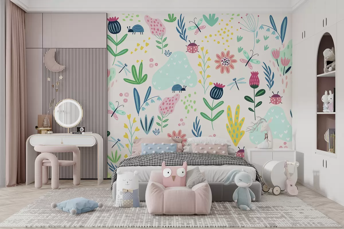 Fotomurales flores, mariposas, libélulas, mariquitas, cuarto de bebe Nr. w00554