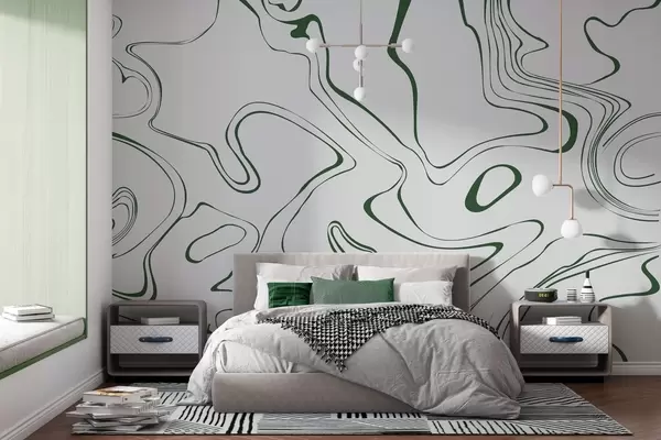 Fotomurales Líneas fluidas en verde y blanco Nr. w00634v3