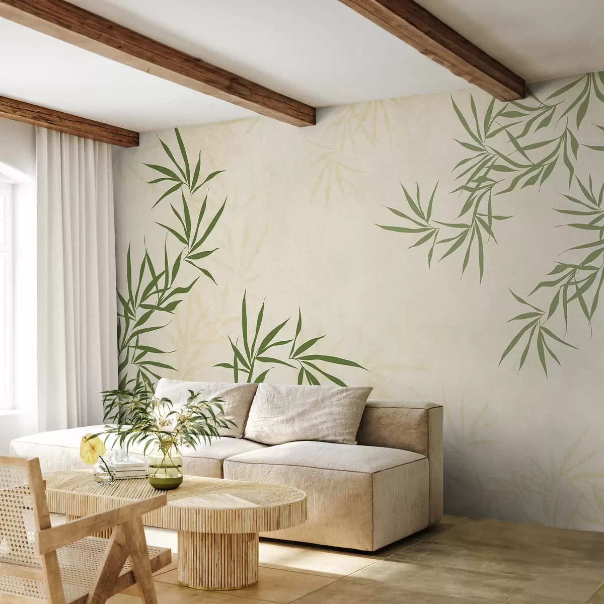 Fotomurales Ramitas de plantas, bambú, estilo vintage, textura de fondo, color amarillo, verde Nr. w00817
